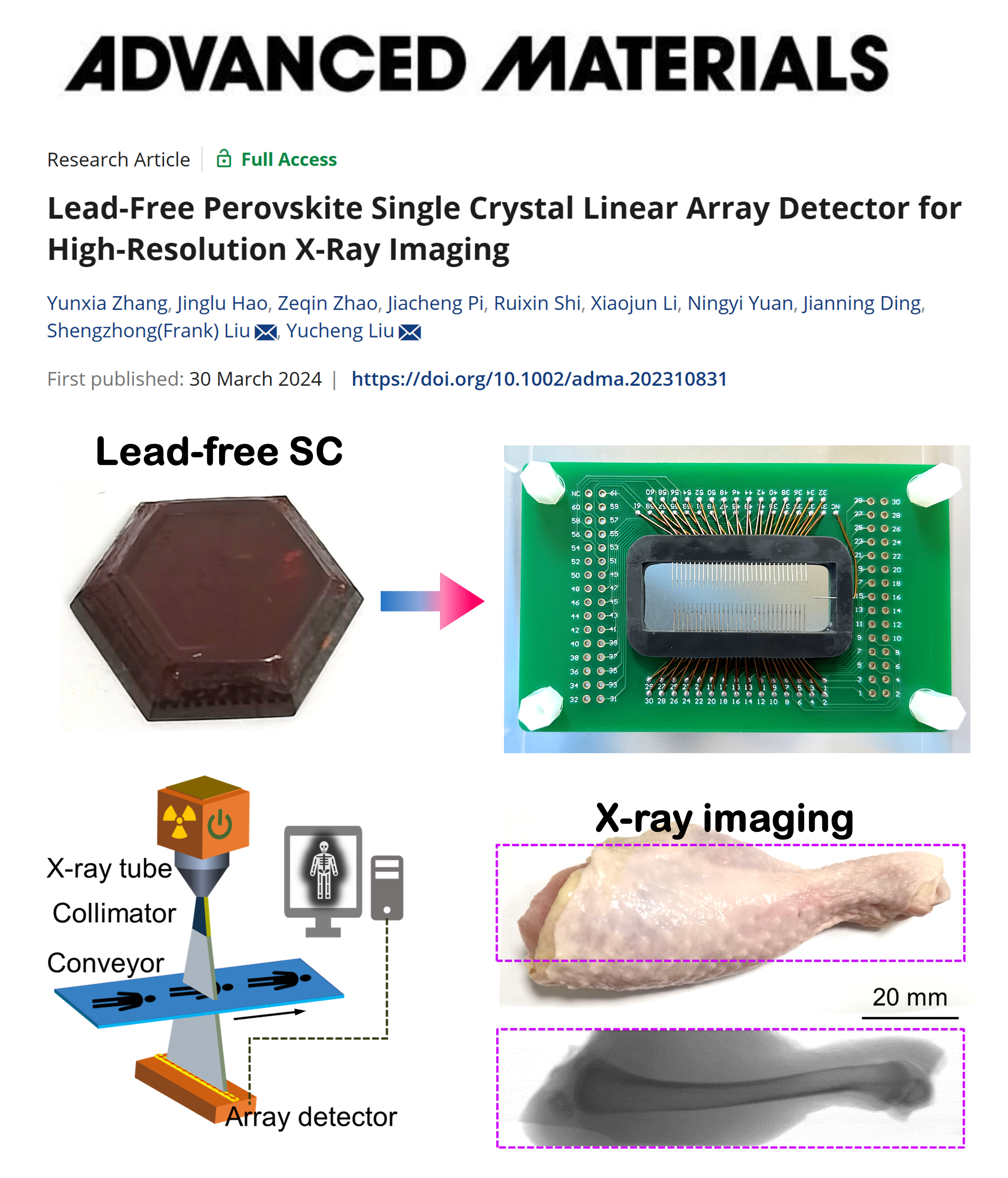 进展一:无铅钙钛矿单晶线性阵列探测器实现高分辨率X射线成像