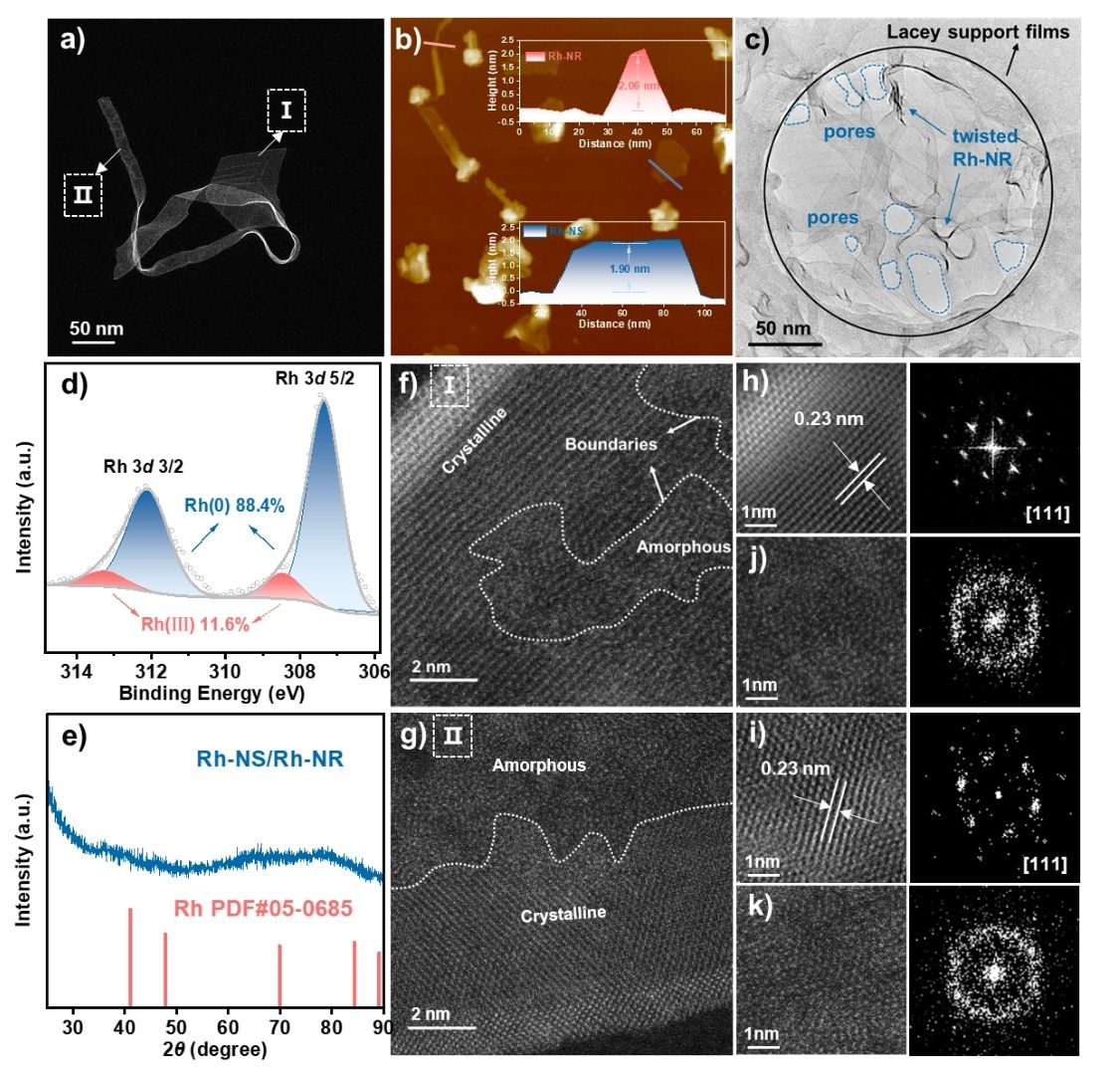 近日,公司先进能源转化材料与器件研究团队在国际著名学术期刊《德国应用化学》(Angewandte Chemie International Edition)在线发表了以“Architecture engineering and phase engineering of rhodium metallene co-boost nitrite-to-ammonia electroconversion”(结构工程和相工程协同增强铑金属烯电催化亚硝酸盐还原性能)为题的研究论文。