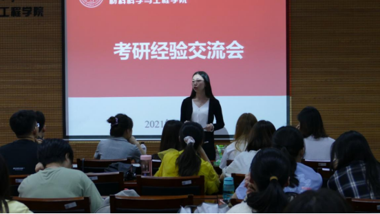 首先杨老师给同学们介绍了这10余名学长学姐的基本情况,公司积极支持和鼓励这种”传帮带”精神,并指出举办本次经验交流会,旨在为有考研意向的同学们解疑答惑,让成功上岸成绩优秀的学长学姐交流并分享他们的考研经历与经验。