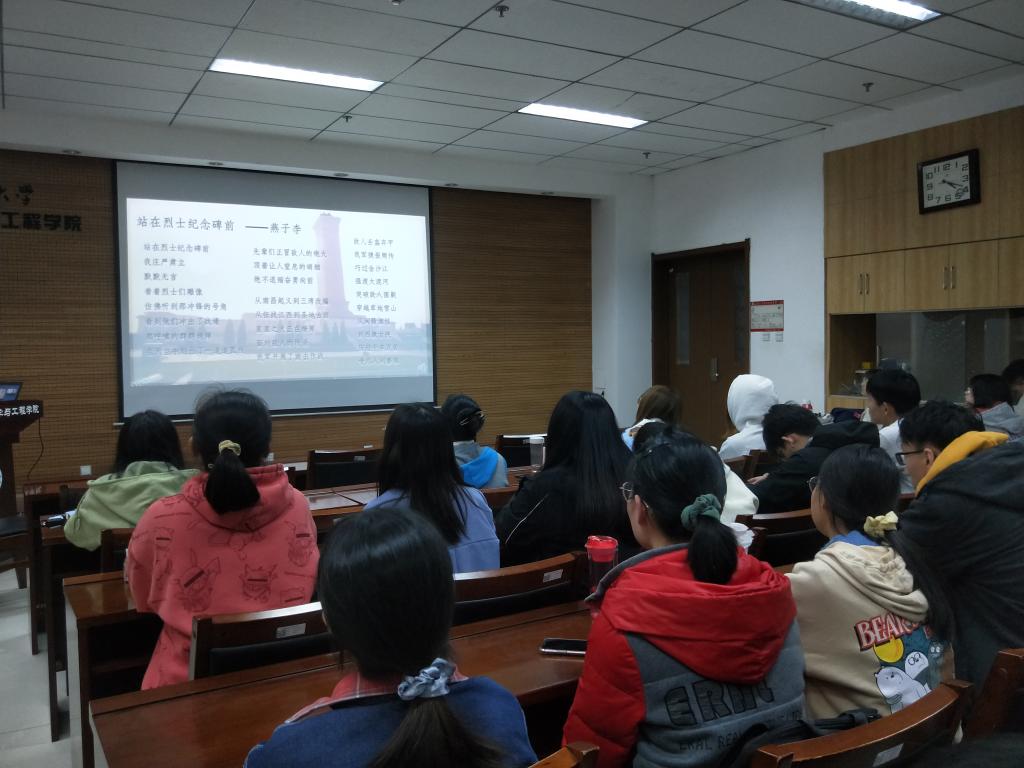 2018级员工开展了以“清明祭英烈 精神永相传”为主题的班会活动。首先播放了一段缅怀英雄先烈,追忆革命精神的视频,随后8位同学分享了自己了解的英烈事迹。主持人随即抛出了一个问题,“我们年轻一代应该履行怎么样的时代使命?”, 同学们就此展开了热烈的讨论。最后同学们一起朗诵诗歌《站在烈士纪念碑前》。
