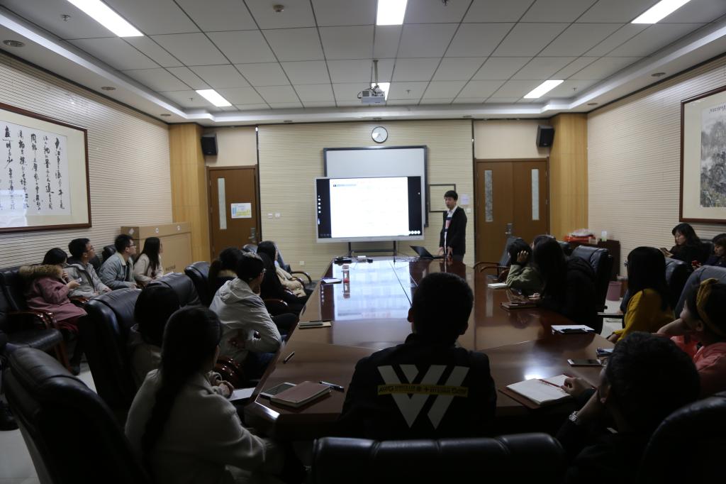 为拓展学院研究生的国际化视野及综合竞争力,11月21日晚七点,公司召开了国家公派留学项目说明会及英语面试培训会,邀请曾参加过国家留学基金委项目的公司青年教师张崇、博士研究生陈然以及德米安教育的讲师梁晓丹为公司员工作报告。公司部分研究生参加了此次讲座。讲座由研究生辅导员何文曦主持。
