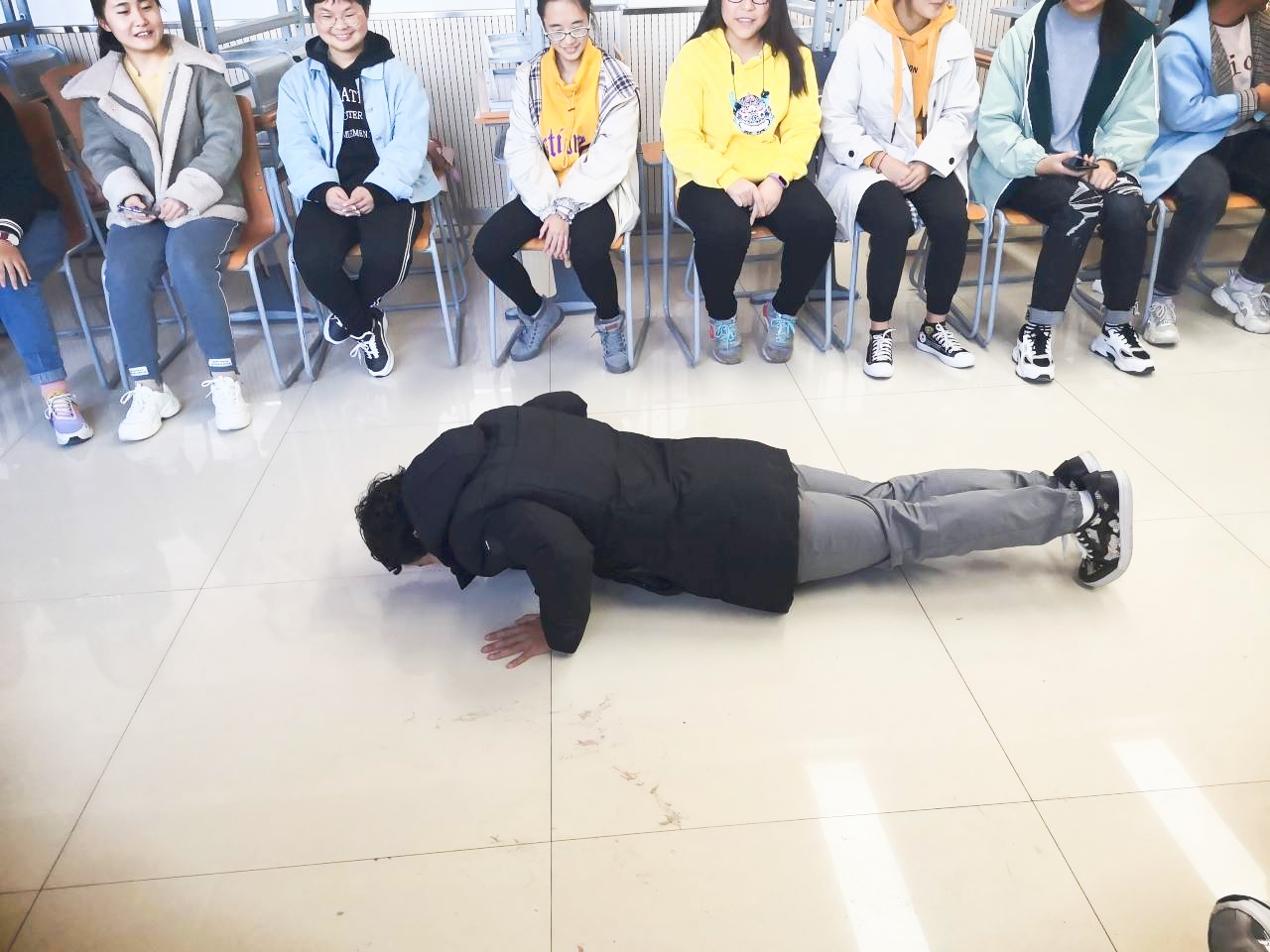 本次活动由心理委员李海硕同学主持,主要包括六个小游戏,分别是“大风吹、一元几角、滚雪球、抓手指、你我的歌、表白不许笑”。每个游戏活动班委们精心组织,各有特色,活动过程中,同学们积极参与,每一个人都融入到游戏中,整个过程同学们欢声笑语,气氛愉悦而融洽。