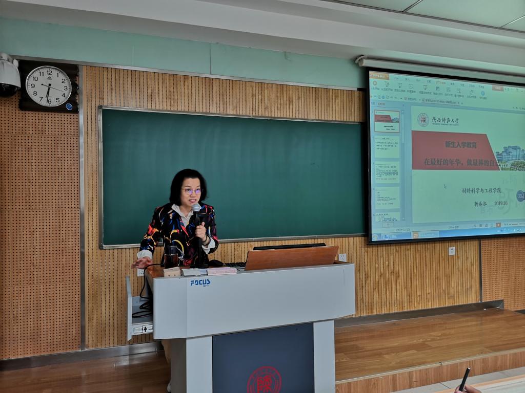 10月7日晚六点半,在国庆收假晚点名结束后,公司于雁塔校区教学八楼8106教室组织开展了2019级新生第四次入学教育活动。公司党委副书记兼副经理靳春泓老师为全体新生做了题为“在最好的年华,做最棒的自己”讲座;2019级新生辅导员赵伟老师主持了本次讲座。