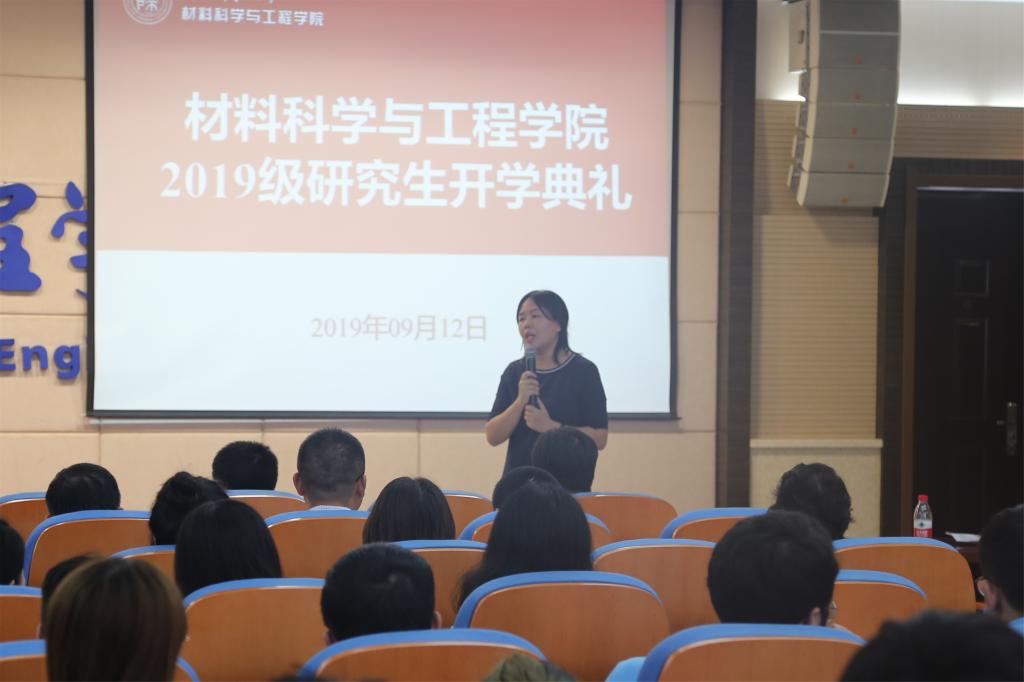 党总支书记杨千社首先代表公司致辞。杨书记真诚欢迎各位新同学,祝贺大家正式成为师大人、材料人。他说2019年是一个很特别的年份,五四运动100周年,新中国成立70周年,每一个人都是历史的创造者,希望同学们明确自己的成长方向,并把它与国家发展和社会进步结合起来,肩负起中华民族伟大复兴的使命和责任!