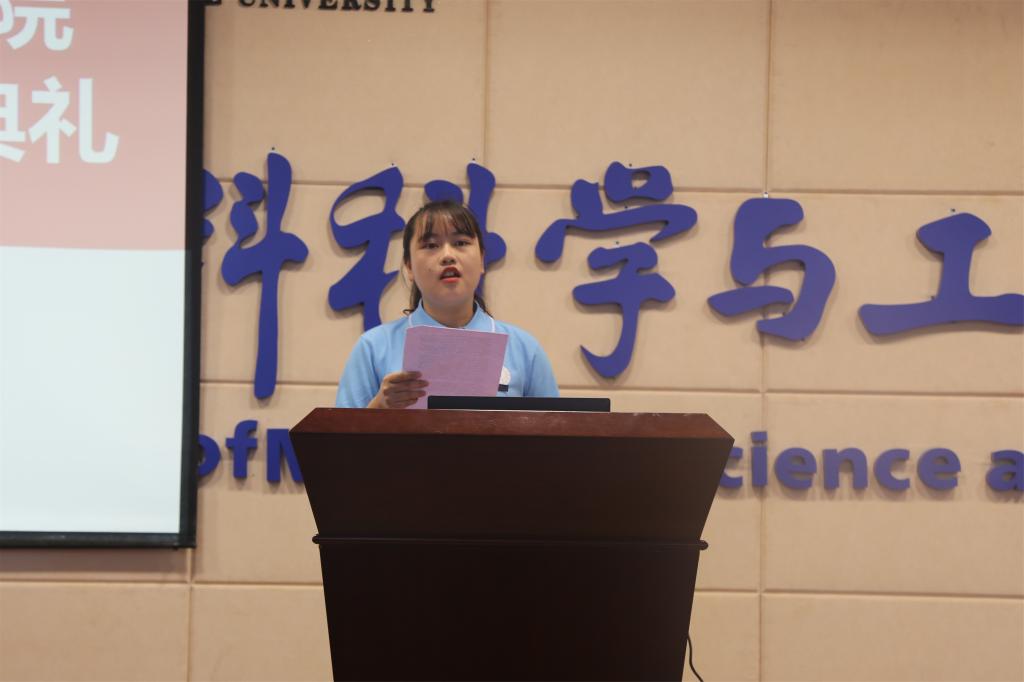 何学侠老师作为研究生导师代表进行了发言,她说本科阶段以获取知识为主,而研究生更注重知识的应用和创造力的提升。建议同学们面临人生的转型阶段,要尽早明确未来的发展目标,对于科研、就业和人生道路的选择进行合理规划并朝着目标努力奋进。