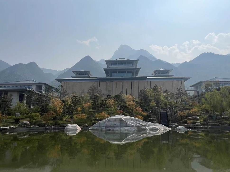西安国家版本馆,又名文济阁,是中国国家版本馆“一总三分”的分馆之一,南倚秦岭圭峰,北望渭水长安,由张锦秋院士带领团队设计,延续了古今交融的理念,以高台置阁作为中轴线上的主体建筑,两侧依地形变化逐台错落,设置功能区,形成中轴对称、主从有序的建筑序列,呈现出大气磅礴的的汉唐气度。
