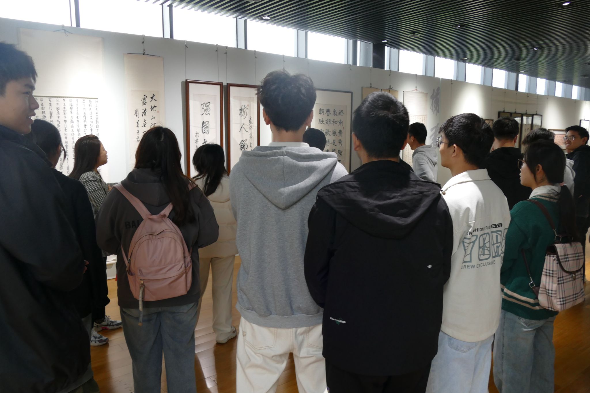 书法艺术凝聚着中华民族的精神内涵,彰显着中国文人的价值追求。笔墨挥洒间是文化的传承,也是精神的传递,墨香飘逸处,是树人之志,也是师者仁心。在丰富多样的作品中,师生们领略到了师大先生们的报国之志和育人之魂。在这场展览中,师生们驻足于每一幅作品前,认真地欣赏和讨论。通过对书法作品的深入观察和体会,每位成员都感受到了中华优秀传统文化的深厚底蕴和独特魅力。字里行间,不仅传递着书法艺术的美感,更是承载着师大先生们对于国家、教育和文化的深切情感和崇高理想。