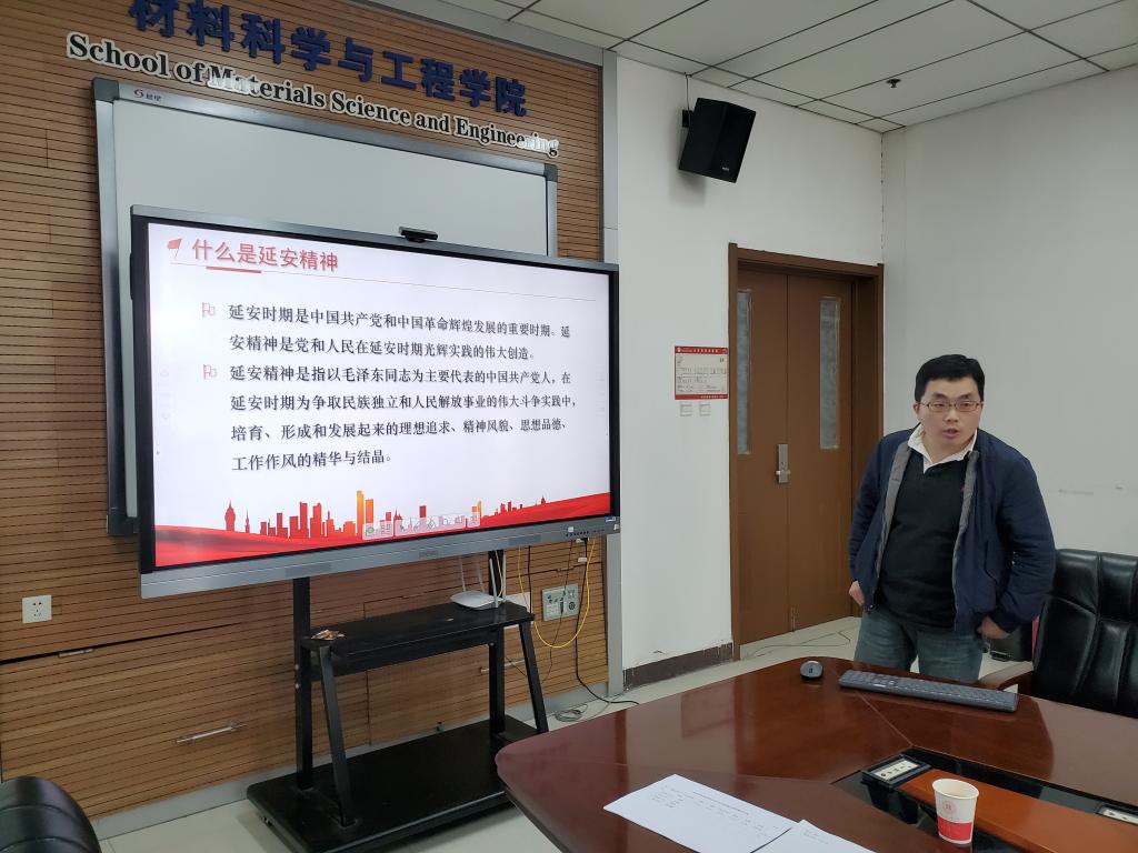 教师第一党支部书记石峰讲授党课的题目是《历史烛照时代 榜样传承精神》,通过四位在不同岗位做出突出贡献的优秀党员的先进事迹,展示了党员应有的时代风范和精神;教师第二党支部书记王强以延安精神及时代价值为主题,对延安精神的形成、内涵和时代价值展开了论述;教师第三党支部书记赵桦从“一五”到“十四五”规划的内容为切入点,讲述了我们党执政能力和治理能力的不断提升的过程。本科生党支部书记何文曦以中国共产党入党誓词的历史沿革为主线,叙述了从建党之初到现在,不同阶段的党员以怎样的座右铭作为自己的行动指南,终身践行。