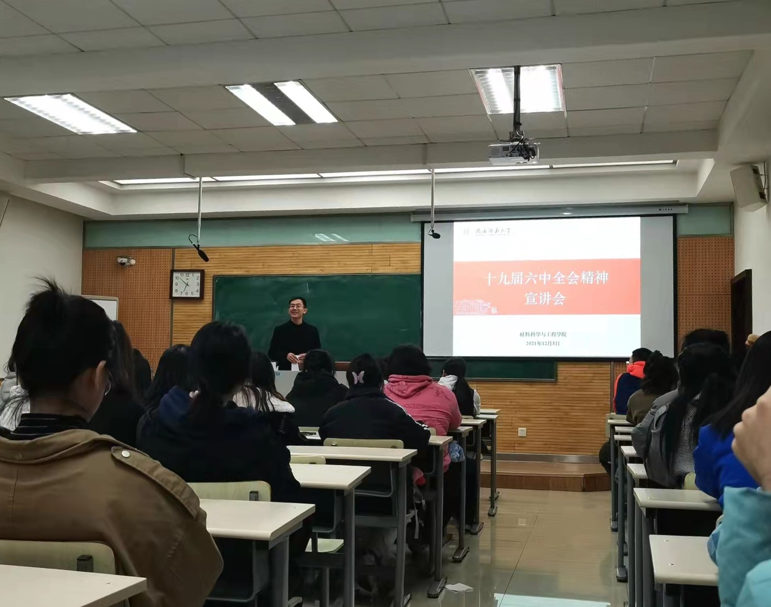 首先,丁喜为全体同学播放了《100秒了解六中全会》宣传视频,让同学们对十九届六中全会有了初步了解。紧接着,他领学了《中共中央关于党的百年奋斗重大成就和历史经验的决议》的部分内容,并结合自身学习工作经历谈了自己的切身体会。最后,同学们集体观看了《我是永远的答卷人》宣传视频。