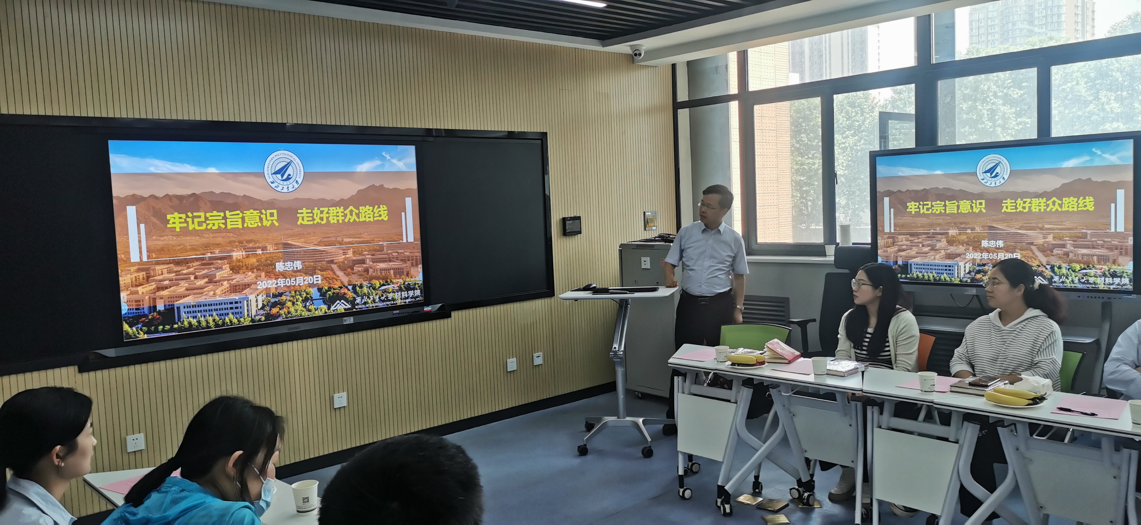 西北工业大学分析测试与教学实验中心融合党支部书记陈忠伟同志为与会党员讲授了《牢固宗旨意识,走好群众路线》的专题党课,介绍了中国共产党群众路线的形成和发展历程,并以焦裕禄同志的优秀事迹,通过生动的语言和大量的实例讲解了“学习焦裕禄事迹,弘扬焦裕禄精神”的主体思想,令与会党员受益匪浅。