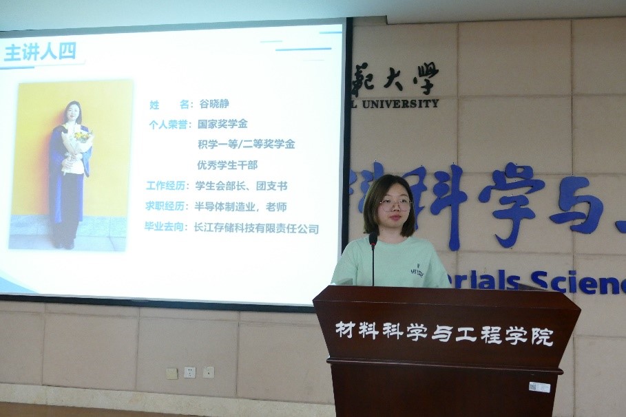 拟就职于绍兴中芯集成电路的李佳辉同学、晟碟信息科技(上海)有限公司的袁鹏同学、长江存储科技有限责任公司的谷晓静同学针对企业求职,分享了职业规划、招聘信息获取、简历撰写与投递、笔试面试过程等技巧和经验。