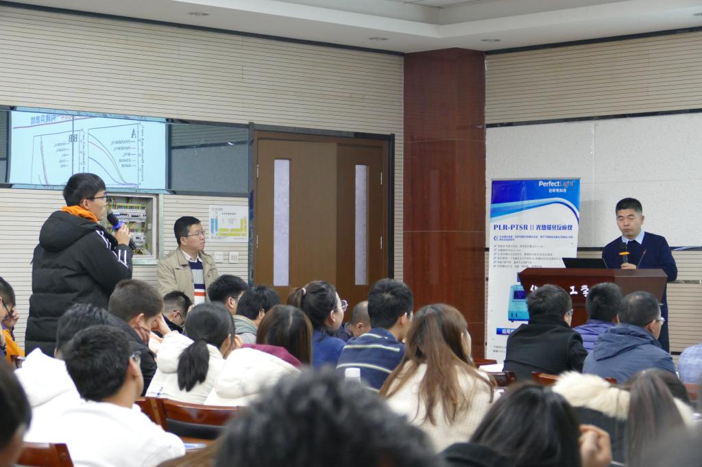 本次论坛分两场进行。第一场报告由王其召主持,第二场报告由杨贵东主持。报告内容包含物理、化学、材料三大学科,主要涉及到太阳能光催化分解水制氢材料的研究进展、可见光催化去除空气中低浓度氮氧化物的研究以及蛋白质的可控聚集与界面粘附等相关研究。与会师生积极提问,展开了热烈地讨论,现场气氛活跃。