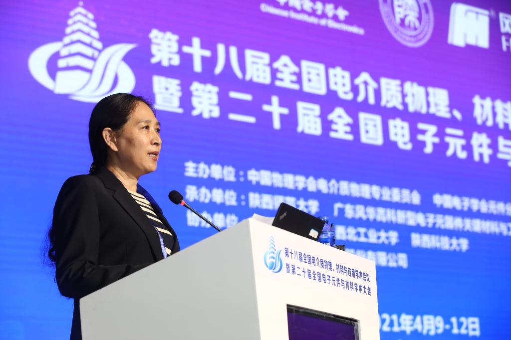 中国电子学会元件分会主任委员、清华大学王晓慧教授致辞,她对精心筹办会议的组委会表示衷心感谢,她表示,本次会议在加强学术交流,促进产学研合作,推动电子元器件的更新换代,加快核心材料和高端元器件的国产化具有重要意义。