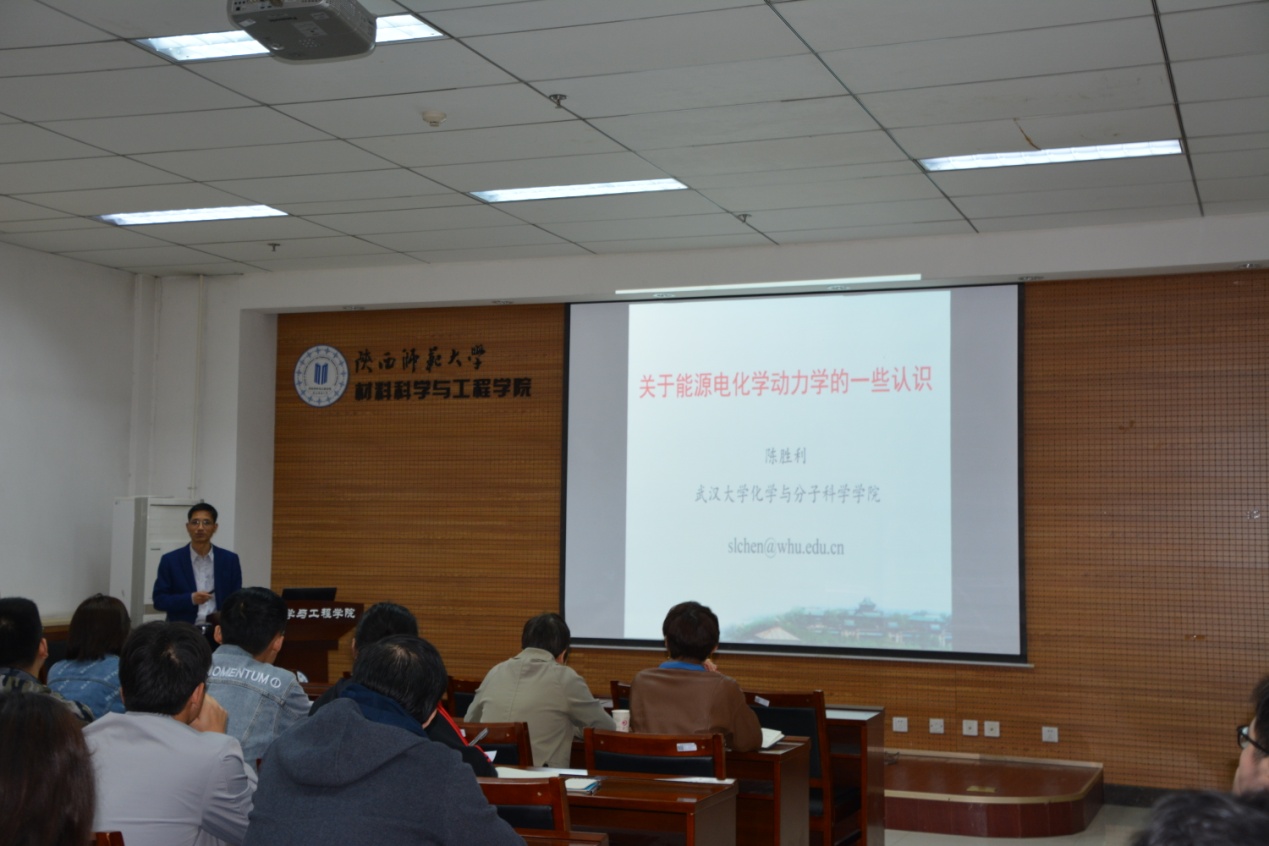 2021年4月24日上午,应公司邀请,武汉大学化学公司陈胜利教授在致知楼2307会议室为广大师生带来了“能源电化学动力学”的学术报告。公司陈沛教授、化学化工公司李淑妮教授、许春丽教授、张伟教授及部分研究生参加了本次报告会,报告会由陈沛教授主持。