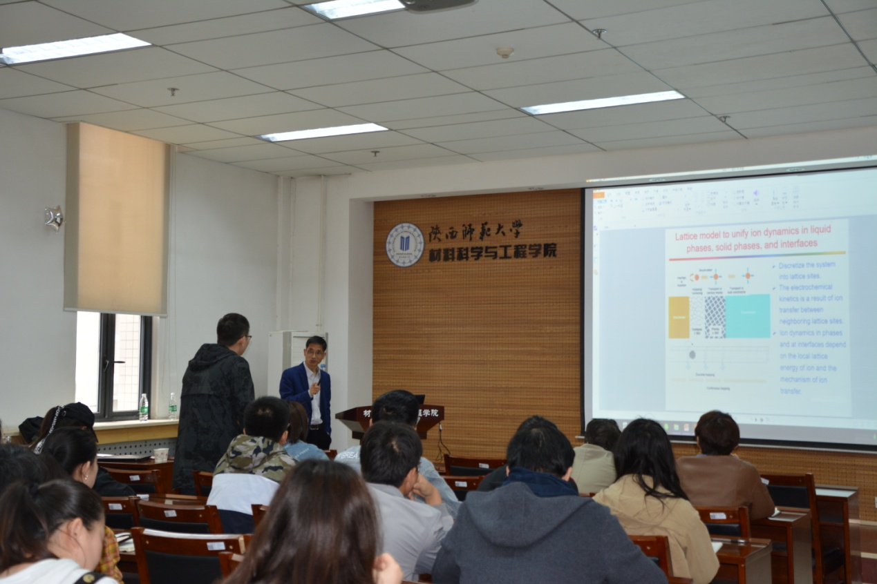 报告会后,陈胜利教授与在场的师生就报告中涉及到的电化学界面的各种电极过程以及离子嵌脱机制等问题进行了热烈的讨论和交流。