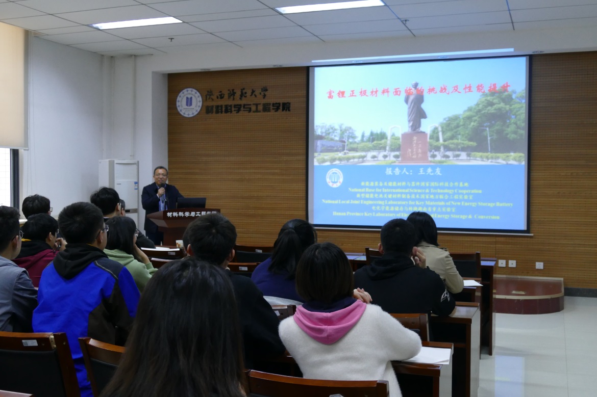 2021年4月25日上午,受公司刘宗怀教授邀请,湘潭大学王先友教授在致知楼2307会议室为广大师生作了题为“富锂正极材料面临的挑战及性能提升”的学术报告。公司李琪副教授、孙颉副教授、何学侠副教授出席了报告会,部分研究生到场聆听了报告,会议由刘宗怀教授主持。