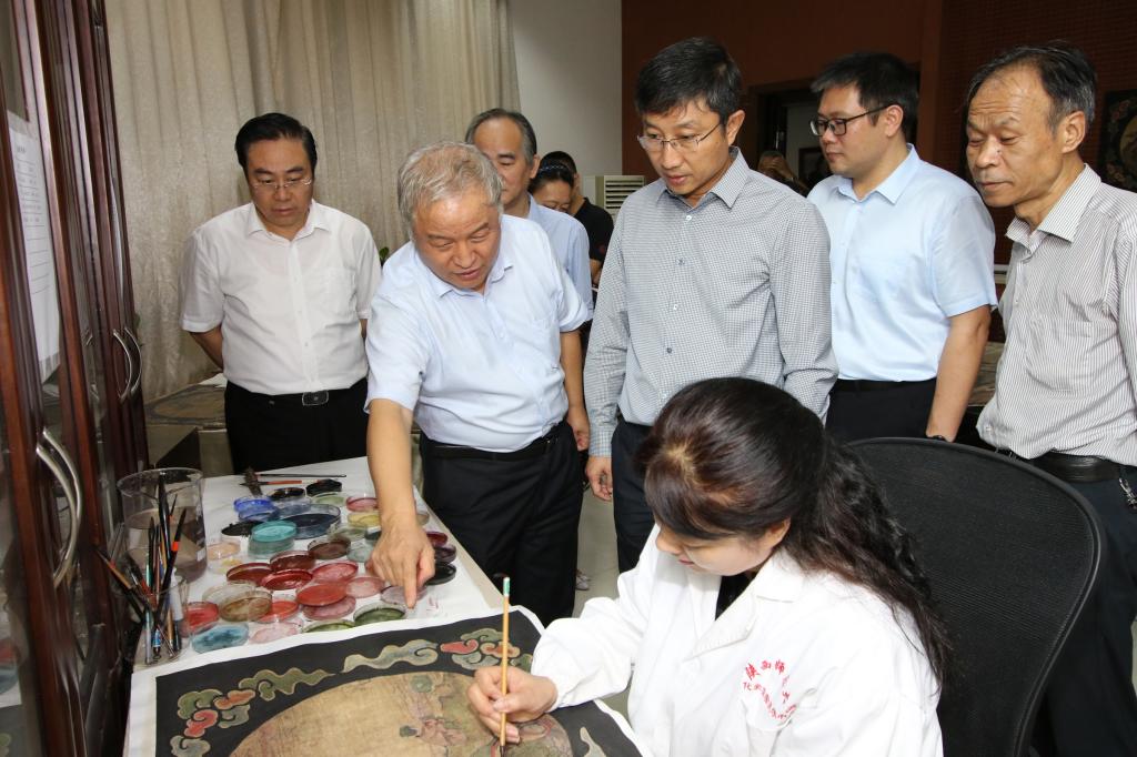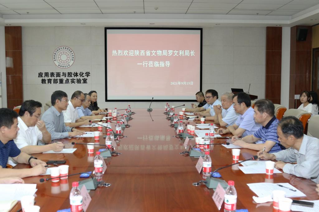 9月15日上午,陕西省文物局党组书记、局长罗文利、副局长贾强等一行来公司调研。游旭群董事长会见罗文利一行,党怀兴副董事长陪同参观、考察了公司教育博物馆、云顶国际vip.888历史文化遗产保护教育部工程研究中心并进行座谈。