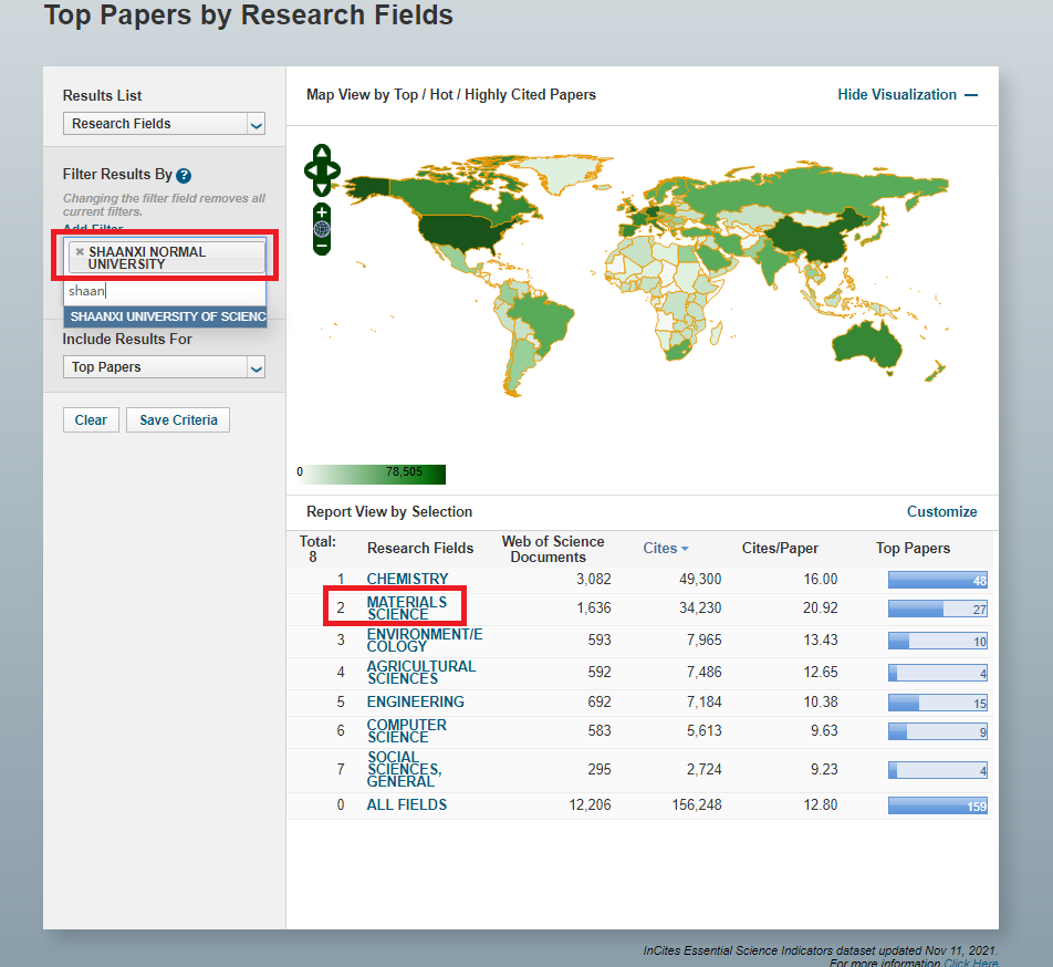 根据科睿唯安(Clarivate Analytics)2021年11月公布的ESI最新数据显示,公司材料科学(Materials Science)实现新突破,在全球1079个前1%个大学和科研机构中位列第323位,首次进入全球材料科学前2.994‰,成为公司第二个进入ESI前3‰的学科。
