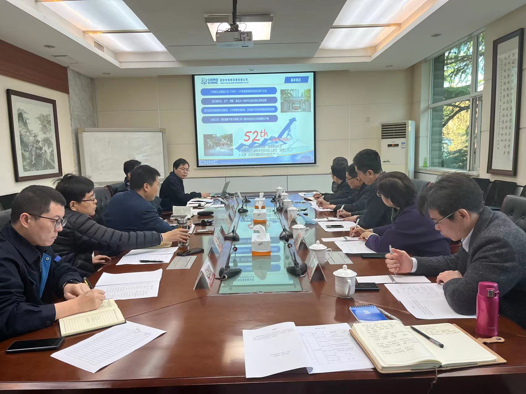 董治国介绍了单位的基本情况。西安中核核仪器有限公司建于1969年,是中国核工业集团有限公司所属大型仪器仪表国有企业,已成为国内核领域最大的核辐射监测系统、火灾报警控制系统、实物保护系统的制造商和集成商之一。