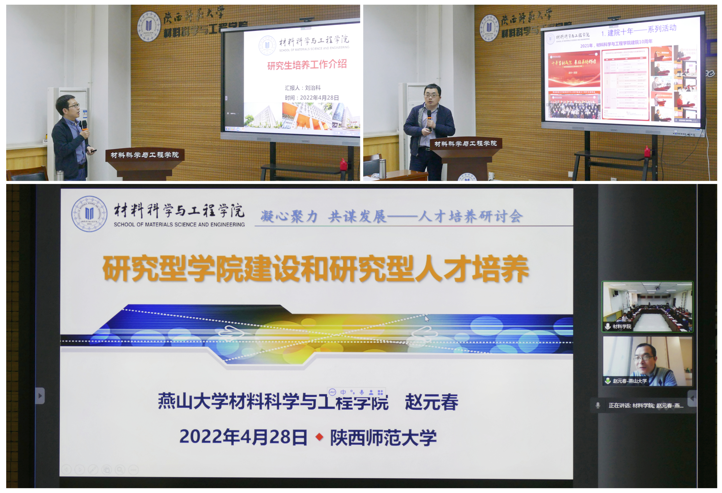 燕山大学赵元春教授做了题为《研究型公司建设和研究型人才培养》的报告,介绍了材料学科的发展与人才培养方面的探索。他强调了建设研究型公司的重要支撑是培养研究型的人才,通过团队建设提升团队队伍水平,打造高端战略人才,开展一体化教学的特色改革。