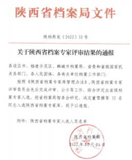 为深入贯彻习近平总书记关于档案工作的重要指示批示精神,全面落实省委常委会听取档案工作汇报时的要求,充分发挥我省科教和人才优势,陕西省档案局在全省组织推荐档案专家,并建立陕西省档案专家库。按照《陕西省档案专家管理办法》,经过评审公示等程序,此次共评选出32名同志入选陕西省档案专家库。公司“文物材料保护”创新团队邢惠萍副教授、周亚军副教授入选省级档案保护保管类专家库,占全省入库专家的2/3。
