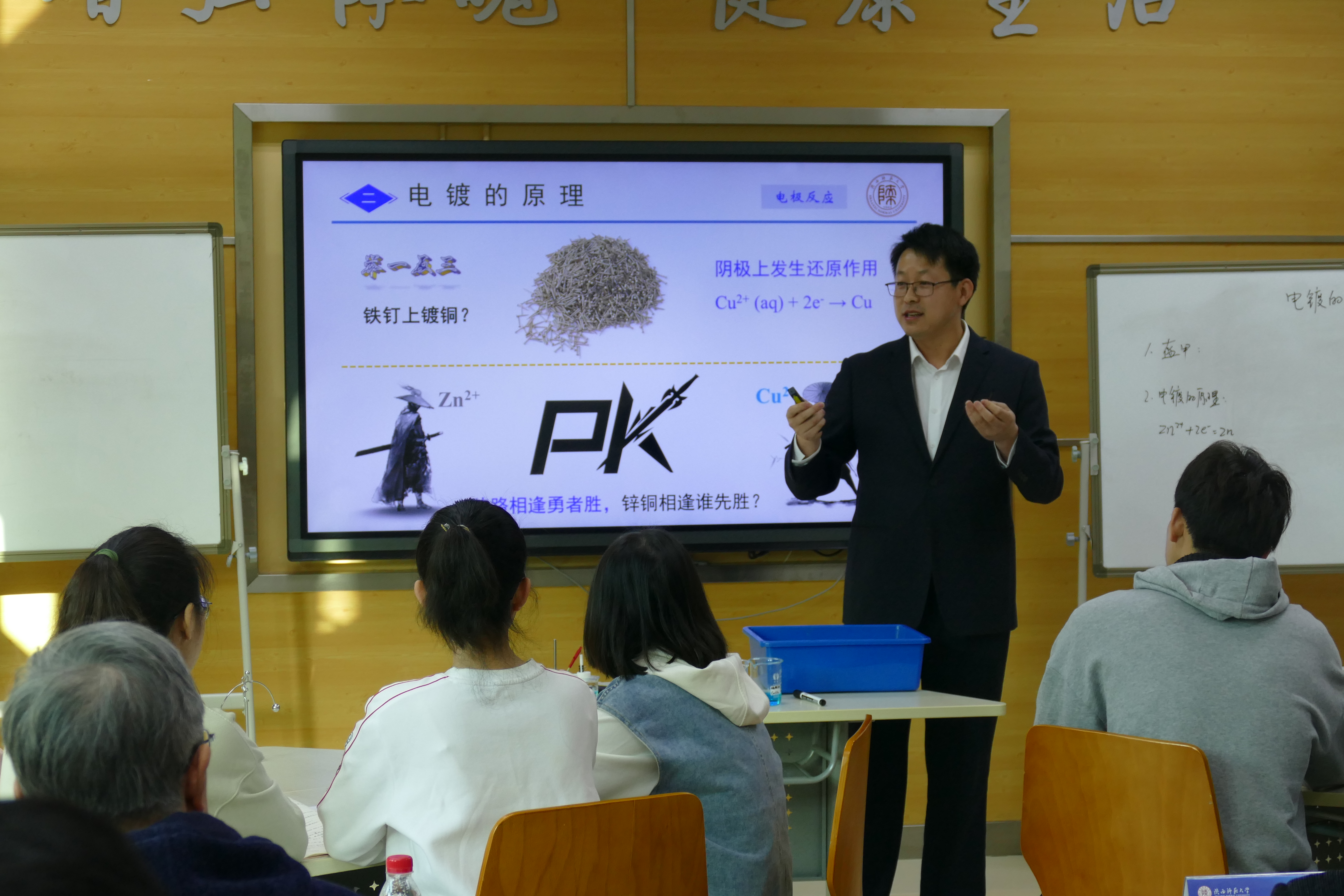 2023年3月4日,经过名师指导和充分的赛前准备,在教学副经理王强老师带队,工会主席金普军老师的陪同下,宁星铭老师和刘渝城老师参加了第十五届青年教师教学基本功大赛校级决赛。通过课堂教学展示和粉笔字书写,二位老师充分展示了自己的教学水平,取得了优异成绩。