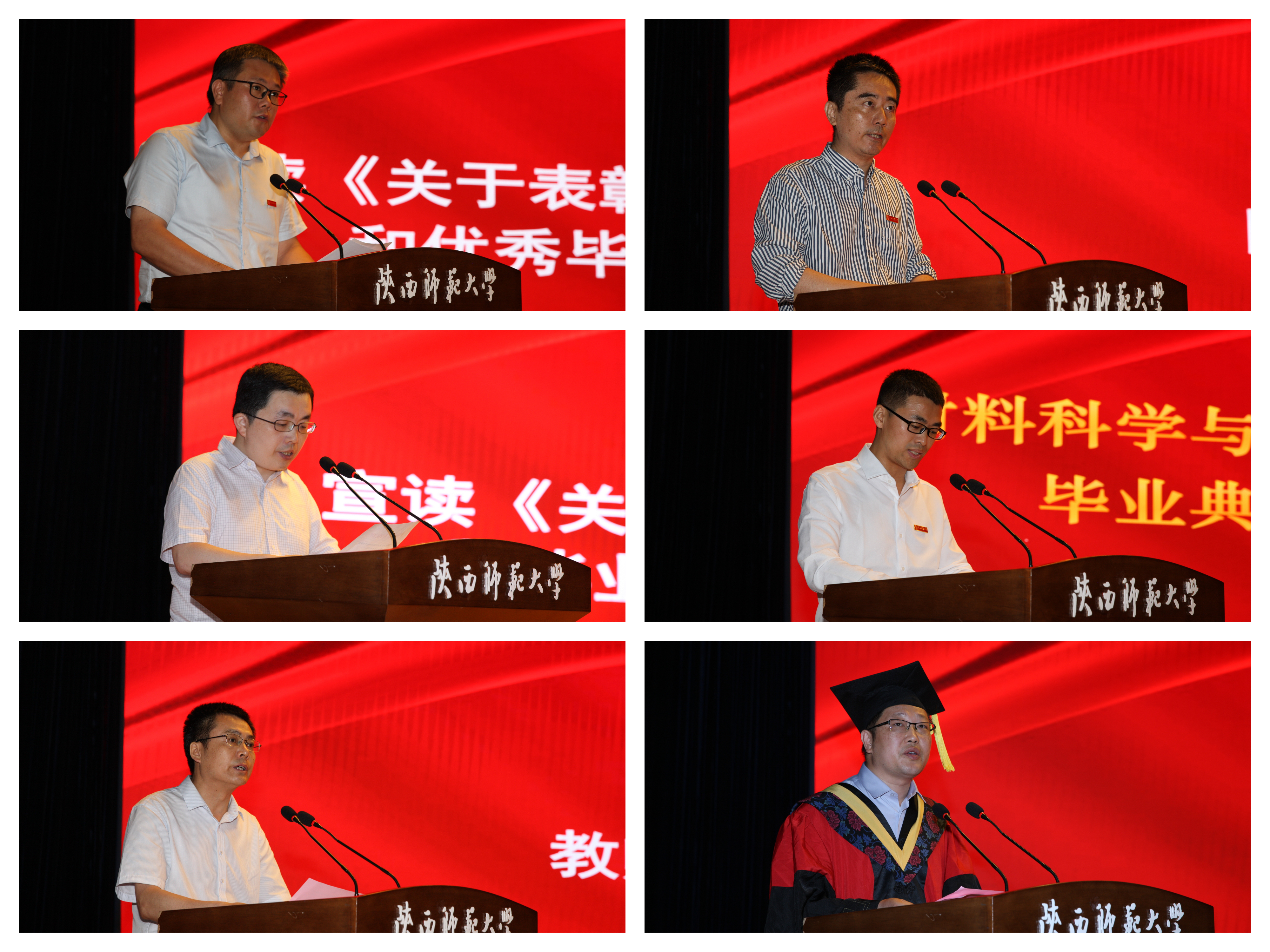 王强宣读《关于表彰优秀学位论文(毕业设计)作者的决定》,江瑞斌宣读《关于表彰研究生优秀学位论文作者的决定》,陈沛、陈煜、徐华三位教授为优秀学位论文获得者颁发证书。