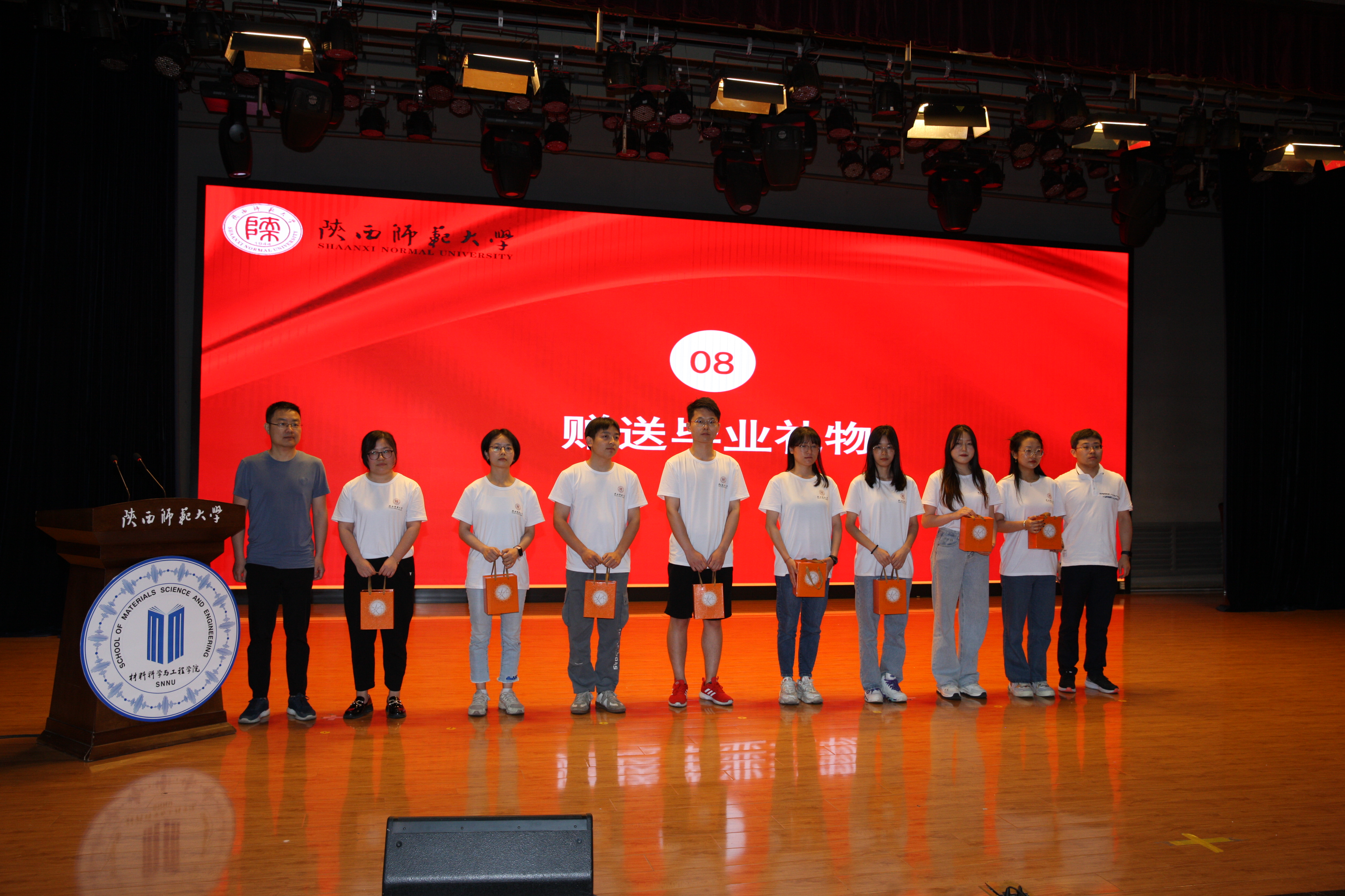晨钟暮鼓读书声,曲江河畔师生情。离别之际,公司为毕业生精心准备了毕业礼物,由吴笛、刘渝城两位教授为毕业生代表赠送毕业礼物。希望同学们常念母校培育之恩、常怀师长教诲之情、常思同窗陪伴之谊,在新的人生征程中不负韶华、不负时代、不负未来。