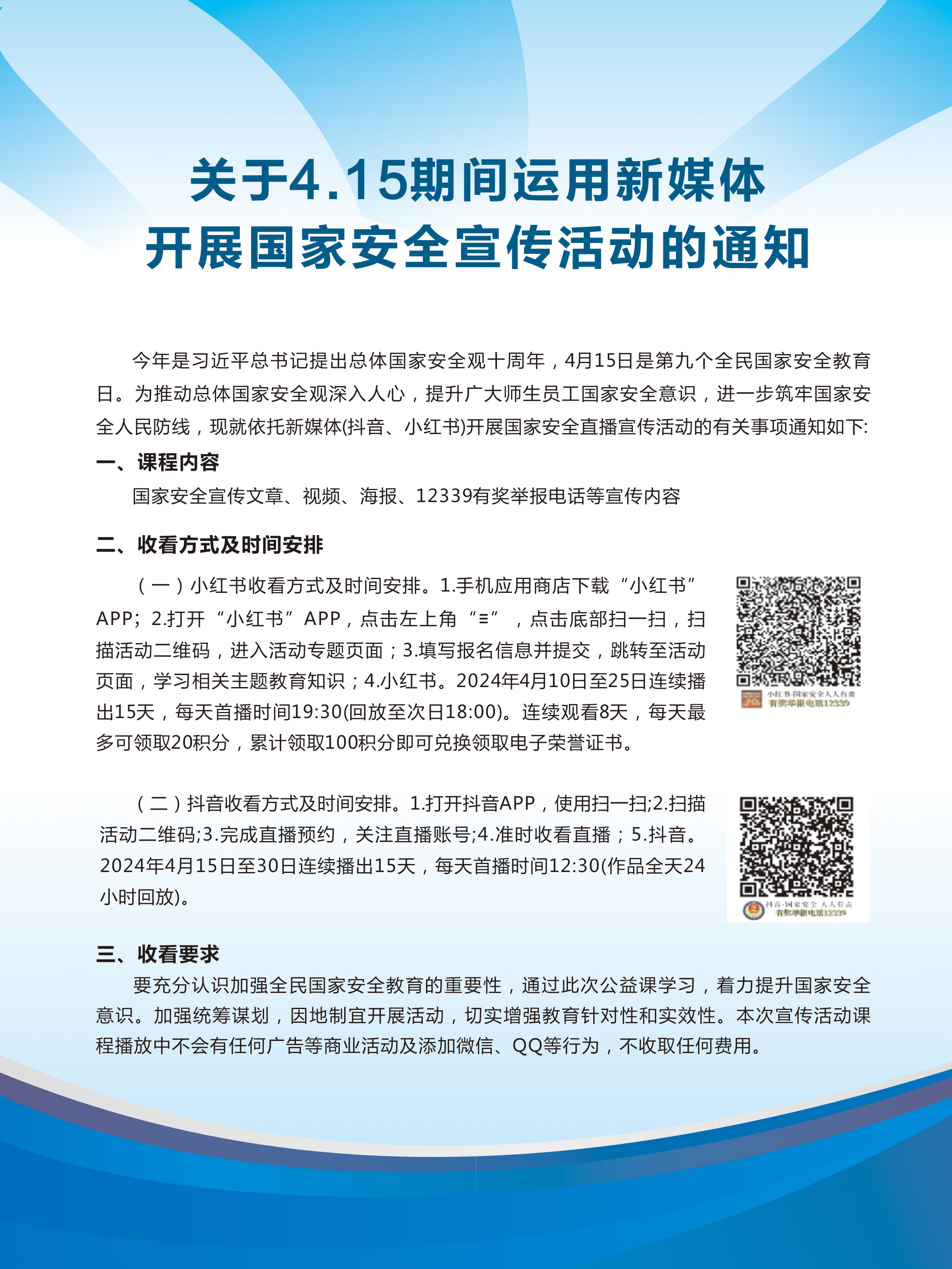 关于4.15期间运用新媒体开展国家安全宣传活动的通知