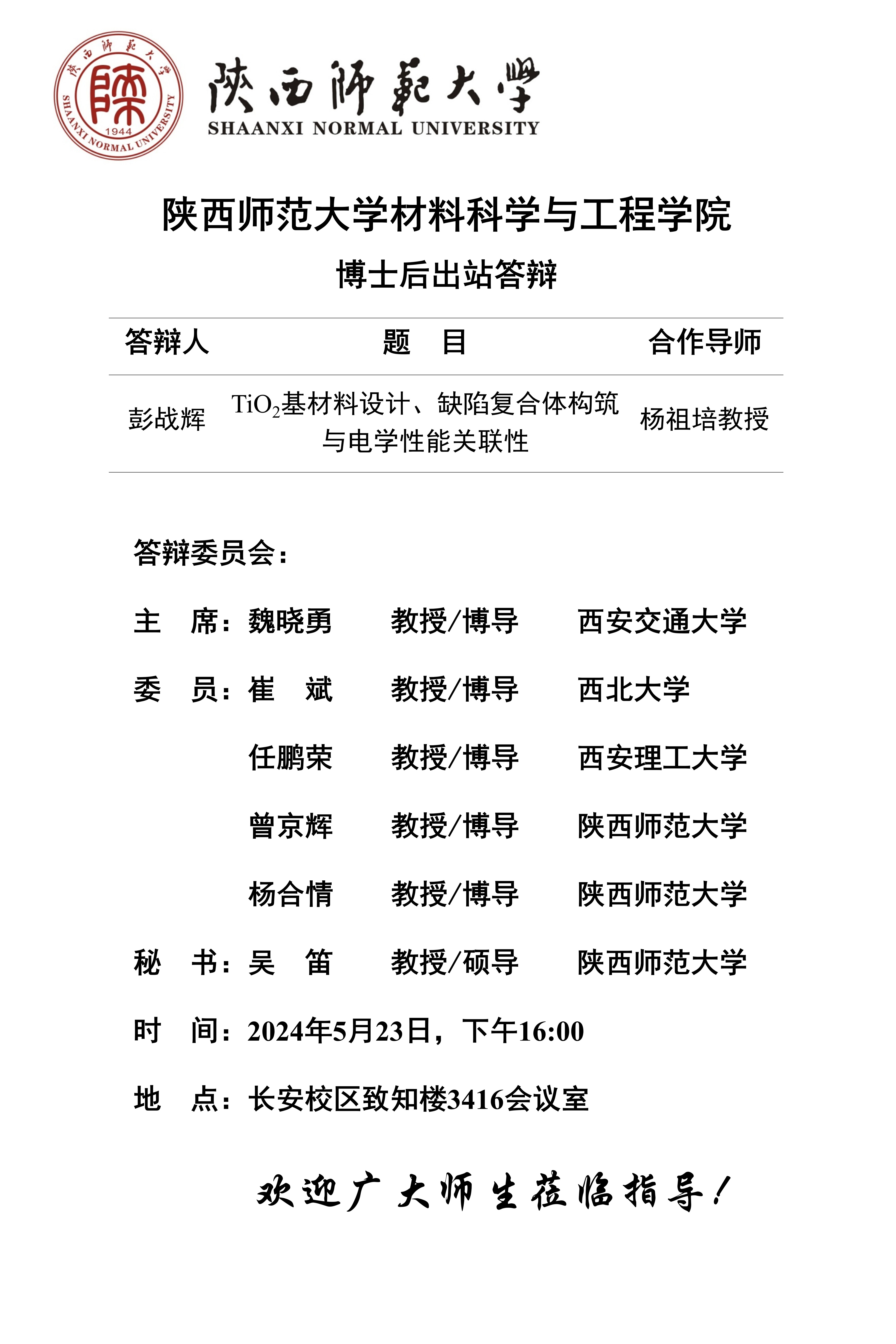 5月23日博士后出站答辩