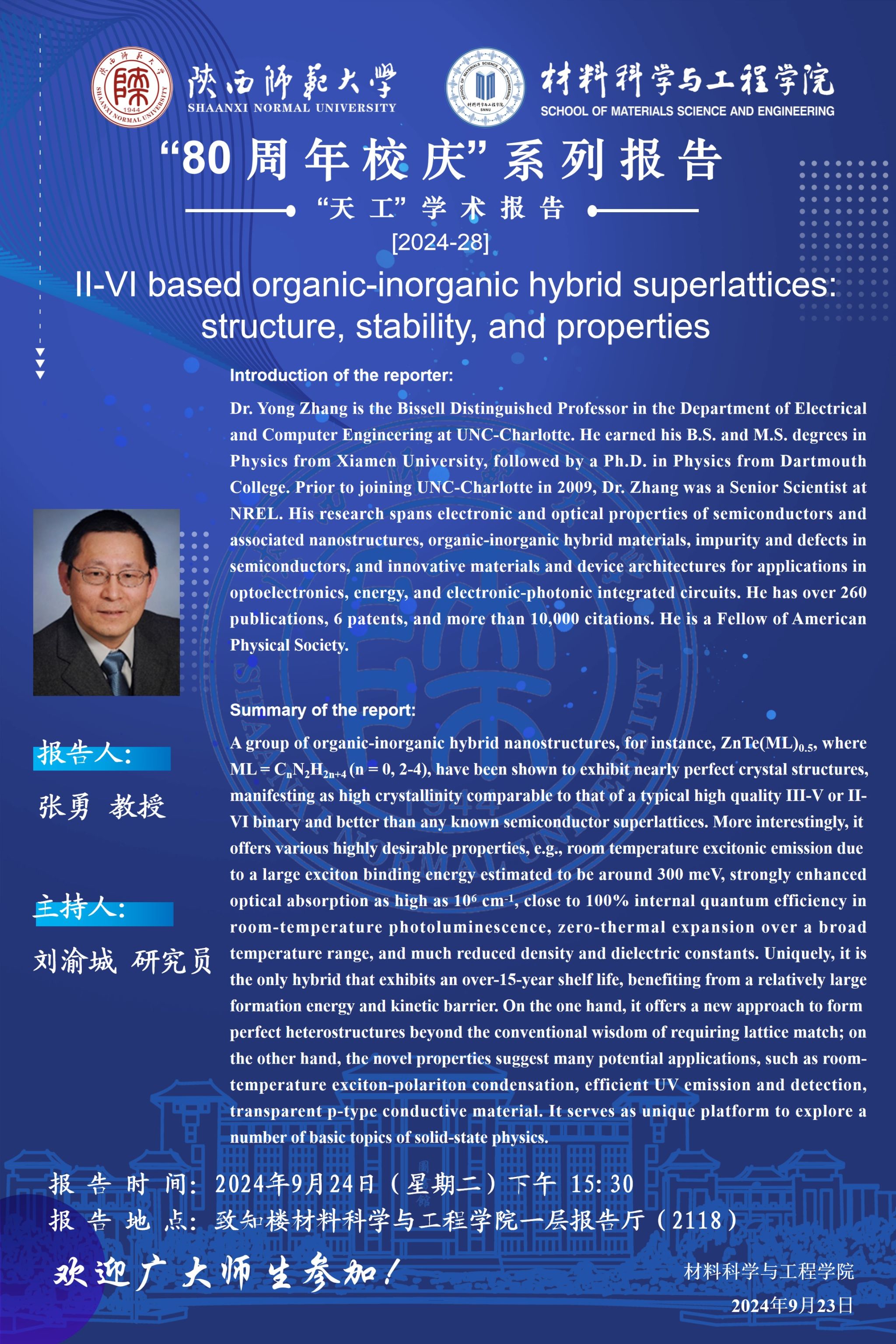 【学术报告】9月24日学术报告预告