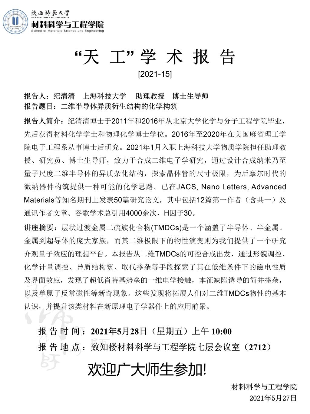 【学术报告】5月28日学术报告预告(一)