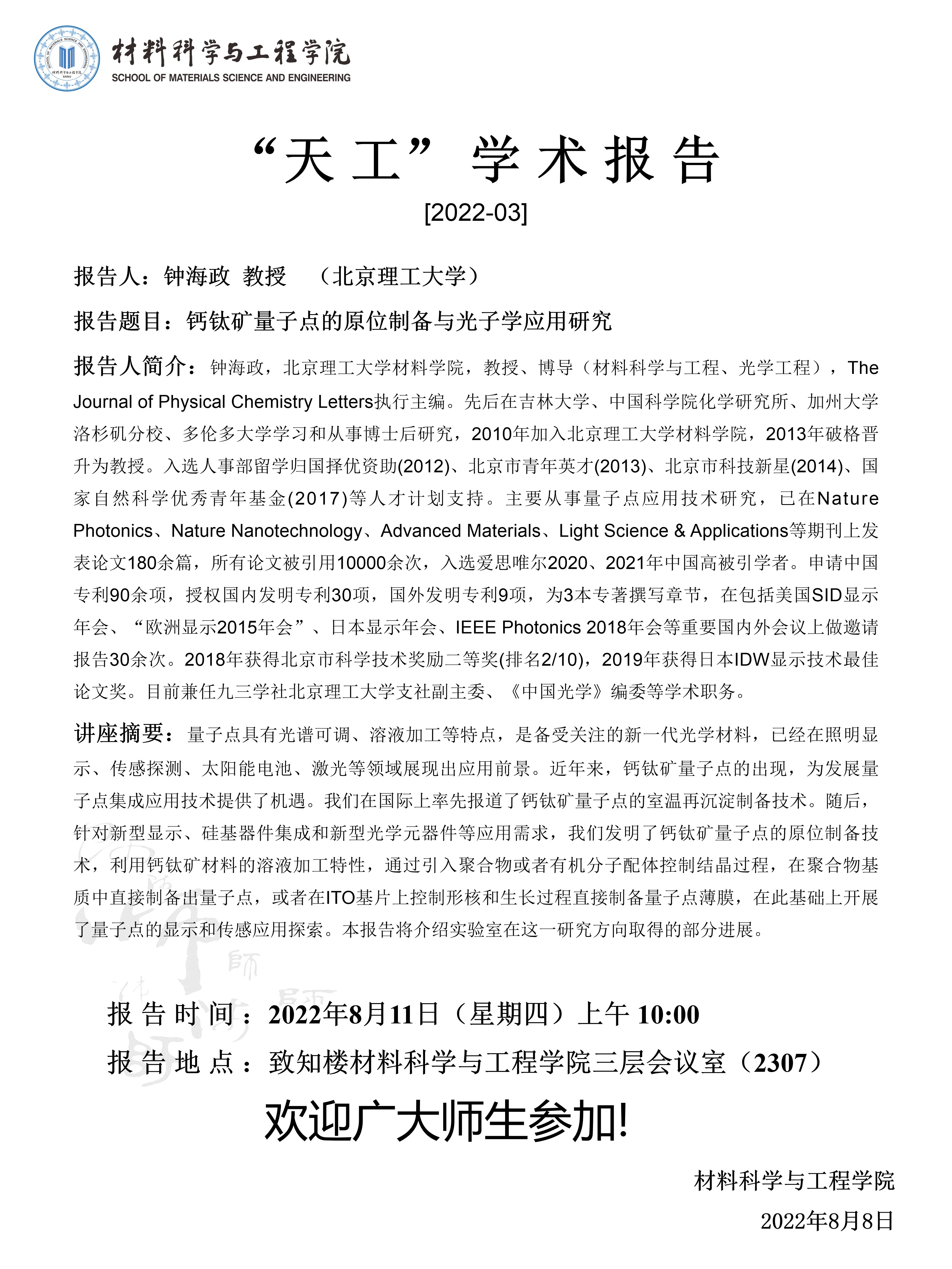 【学术报告】8月11日学术报告预告