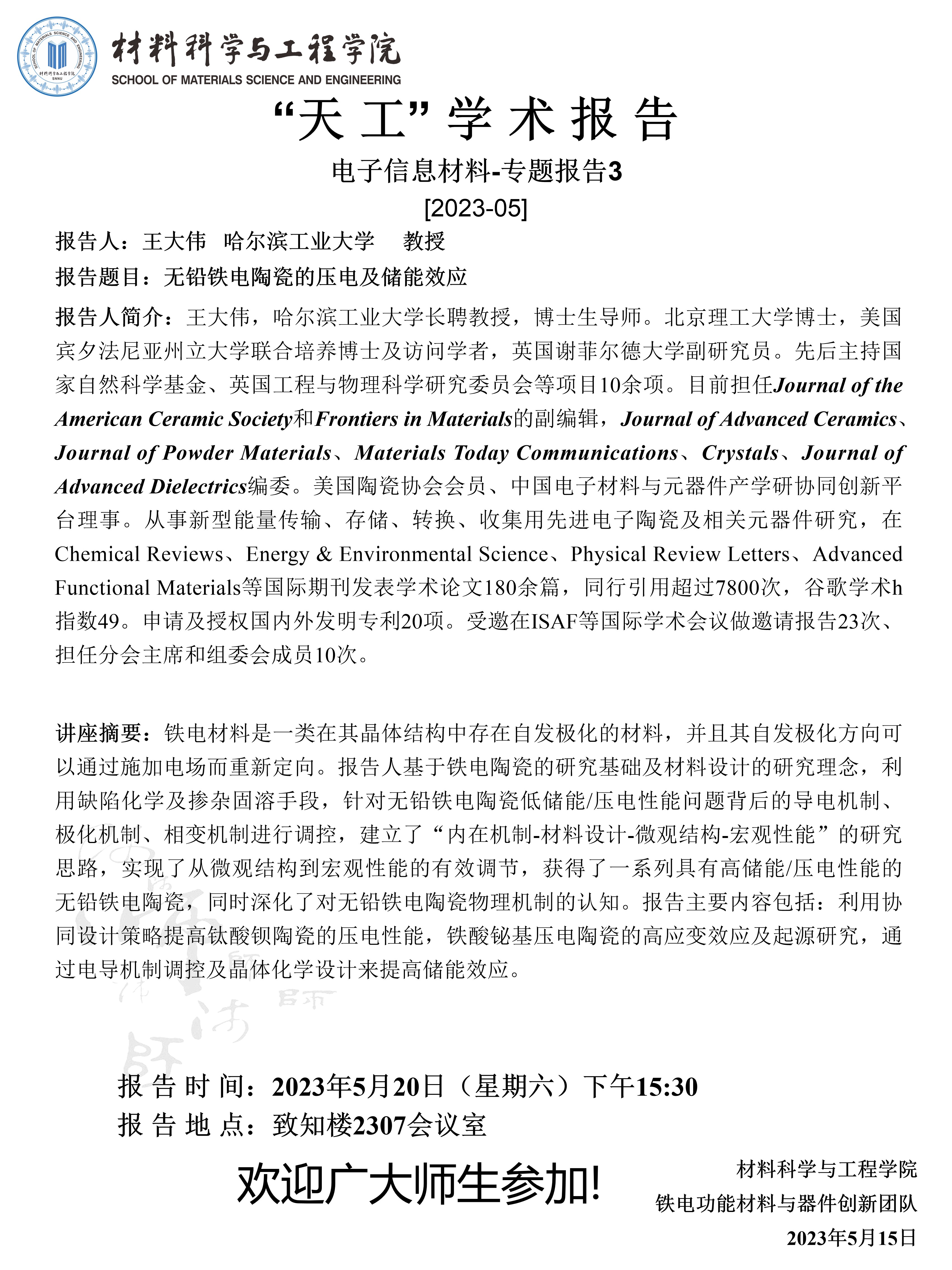 【学术报告】5月20日学术报告预告
