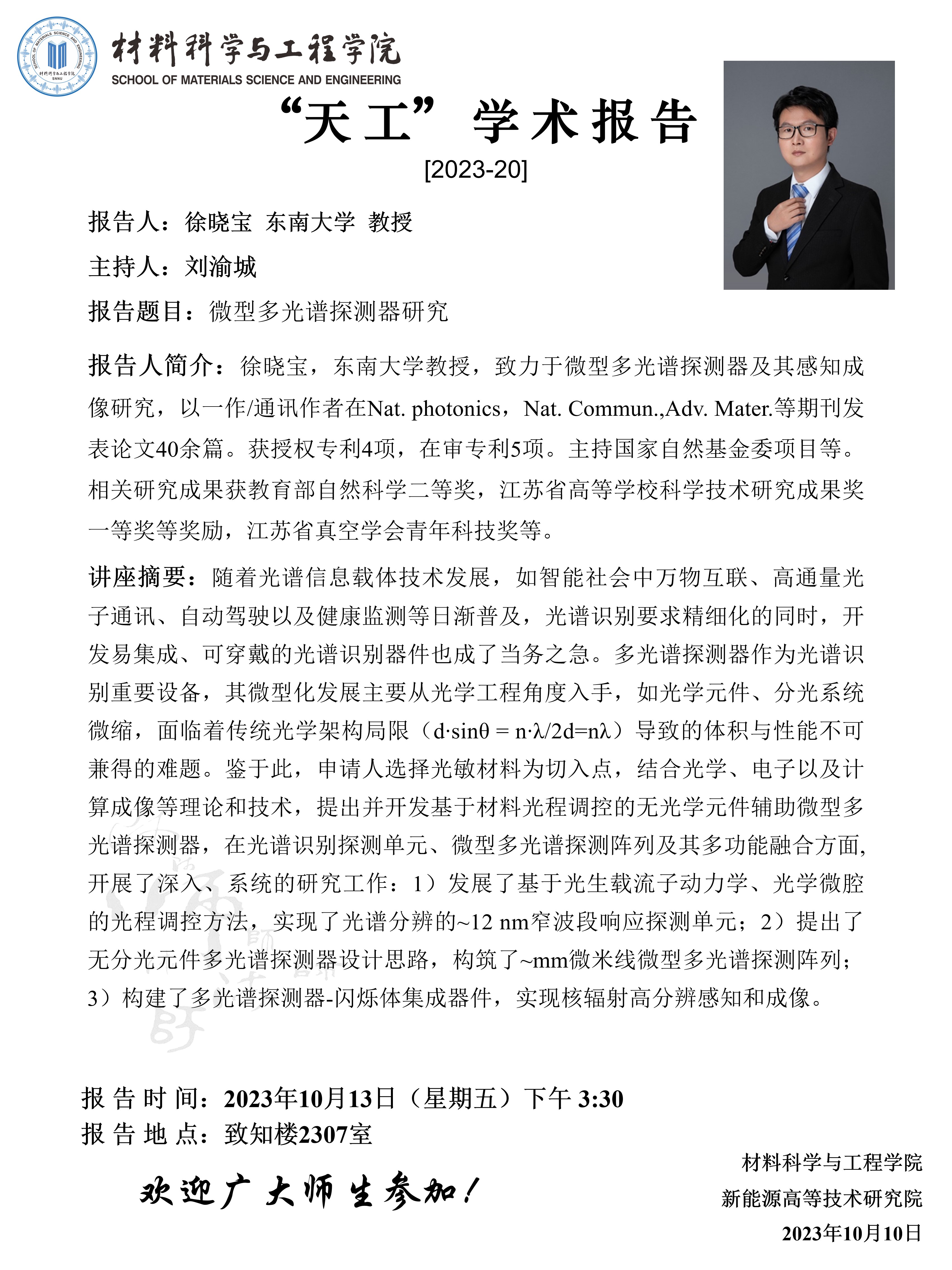 【学术报告】10月13日学术报告预告(一)
